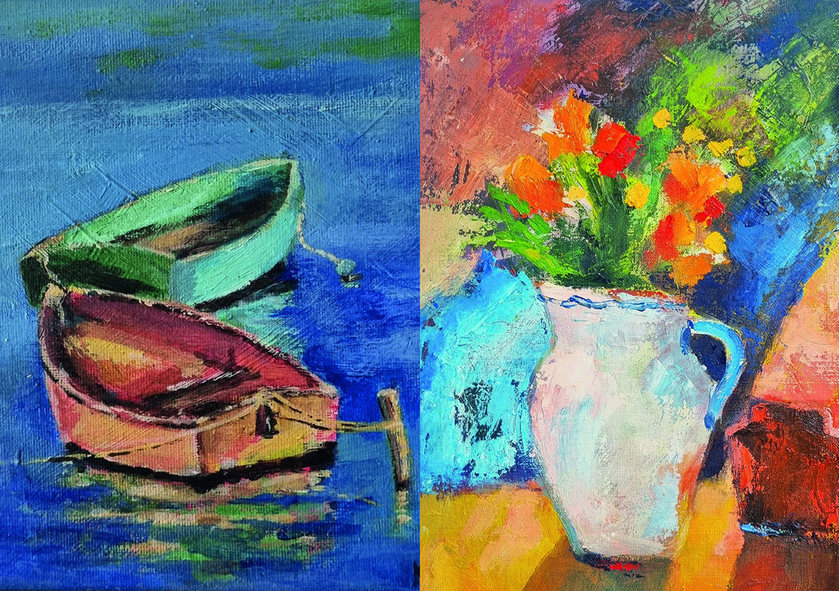 Målningen till vänster är av Karin Andersson och målningen till höger är av Torsten Andersson. Båda bilderna är beskurna.